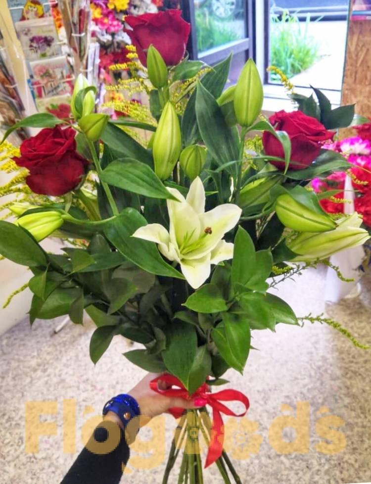 Даже небольшое количество лилий, будет смотреться богато и дорого из-за пышности цветка. А в сочетании с розами, получается цветочный шедевр. Учитывайте при покупки что восточные лилии имею сильный запах.